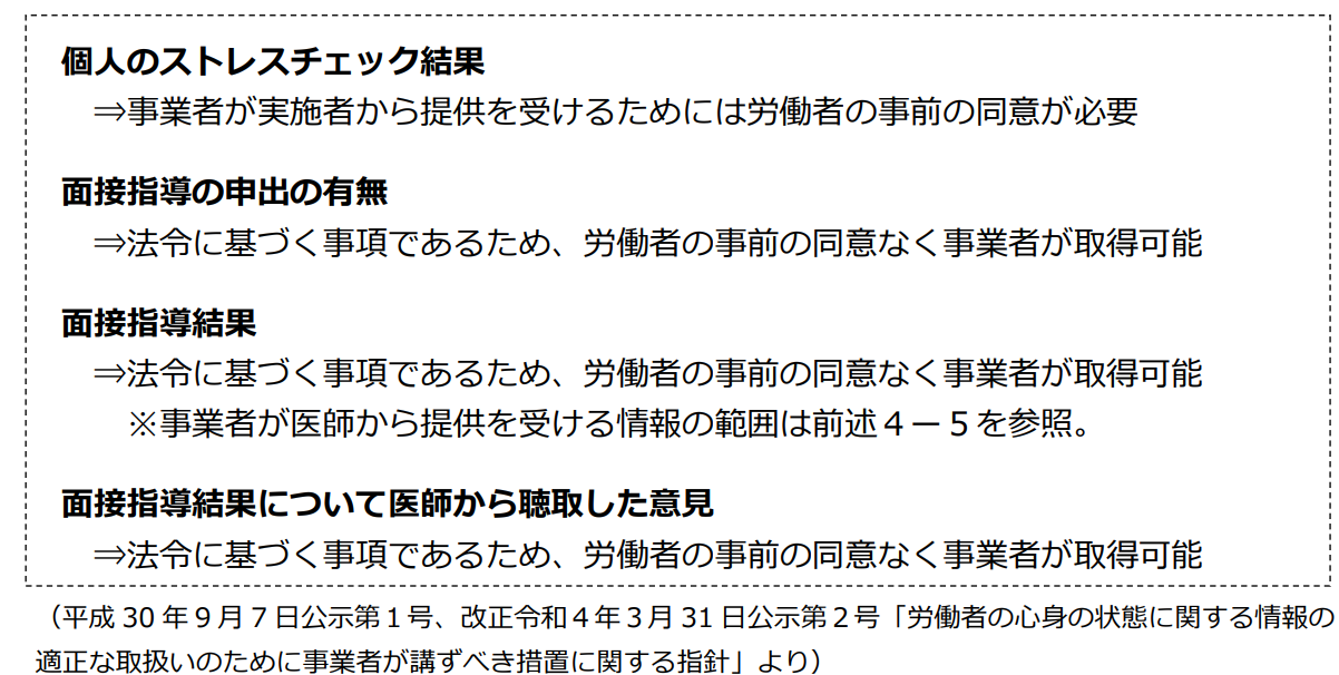 ストレスチェック制度に関連する結果、意見等について、事業者が提供を受ける場合の留意点は以下の通りです。