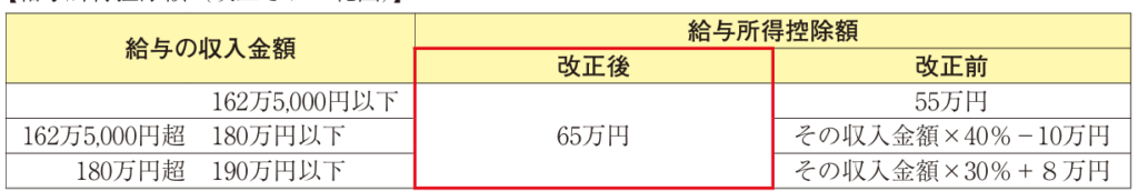 なお、給与の収入金額190万円超の場合の給与所得控除額に改正はありません。