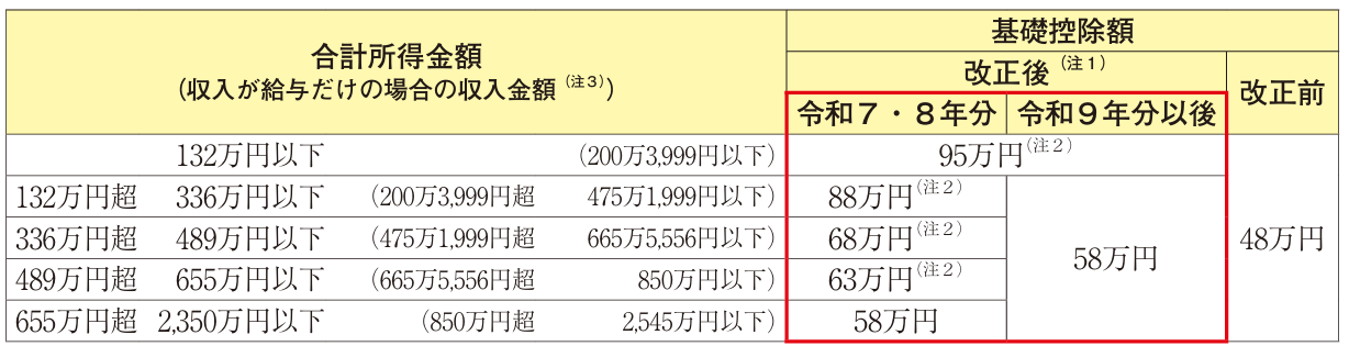 なお、合計所得金額2,350万円超の場合の基礎控除額に改正はありません。