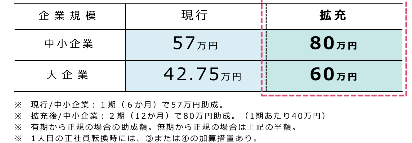 次に、支給対象期間を現行の「6か月」から「12か月」に拡充し、拡充に伴い、6か月あたりの助成額が見直されることになりました。