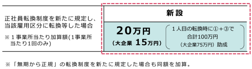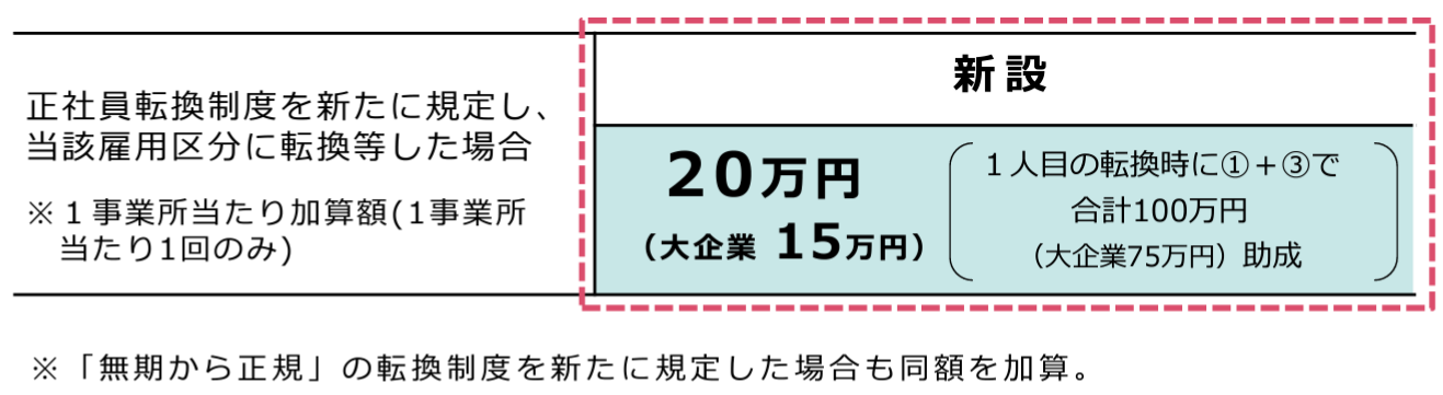 次に、新たに正社員転換制度の導入に取り組む事業主に対する加算措置が新設されます。