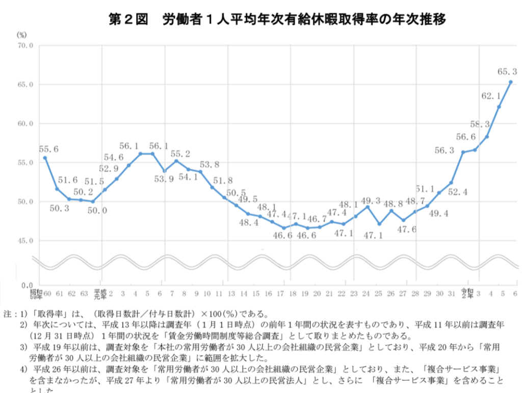 年休取得率が65%に上昇