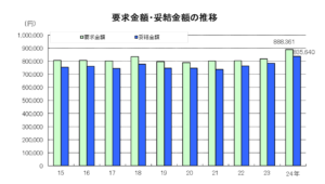 また、全国加重平均は1,054円となります。この場合、全国加重平均の上昇額は50円(昨年度は43円)となり、昭和53年度に目安制度が始まって以降で最高額となります。また、引上げ率に換算すると5.0%(昨年度は4.5%)となります。