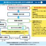 2025年6月9日 / 最終更新日時 : 2025年6月25日 MORI社労士・行政書士事務所 パンフレット 熱中症対策が義務化 熱中症の重篤化を防止するため、労働安全衛生規則が改正され、令和7年6月1日から施行されました。この改正により、以下の措置が事業者に義務付けられます。 なお、「熱中症を生ずるおそれのある作業」とは、WBGT(湿球黒球温度) […]